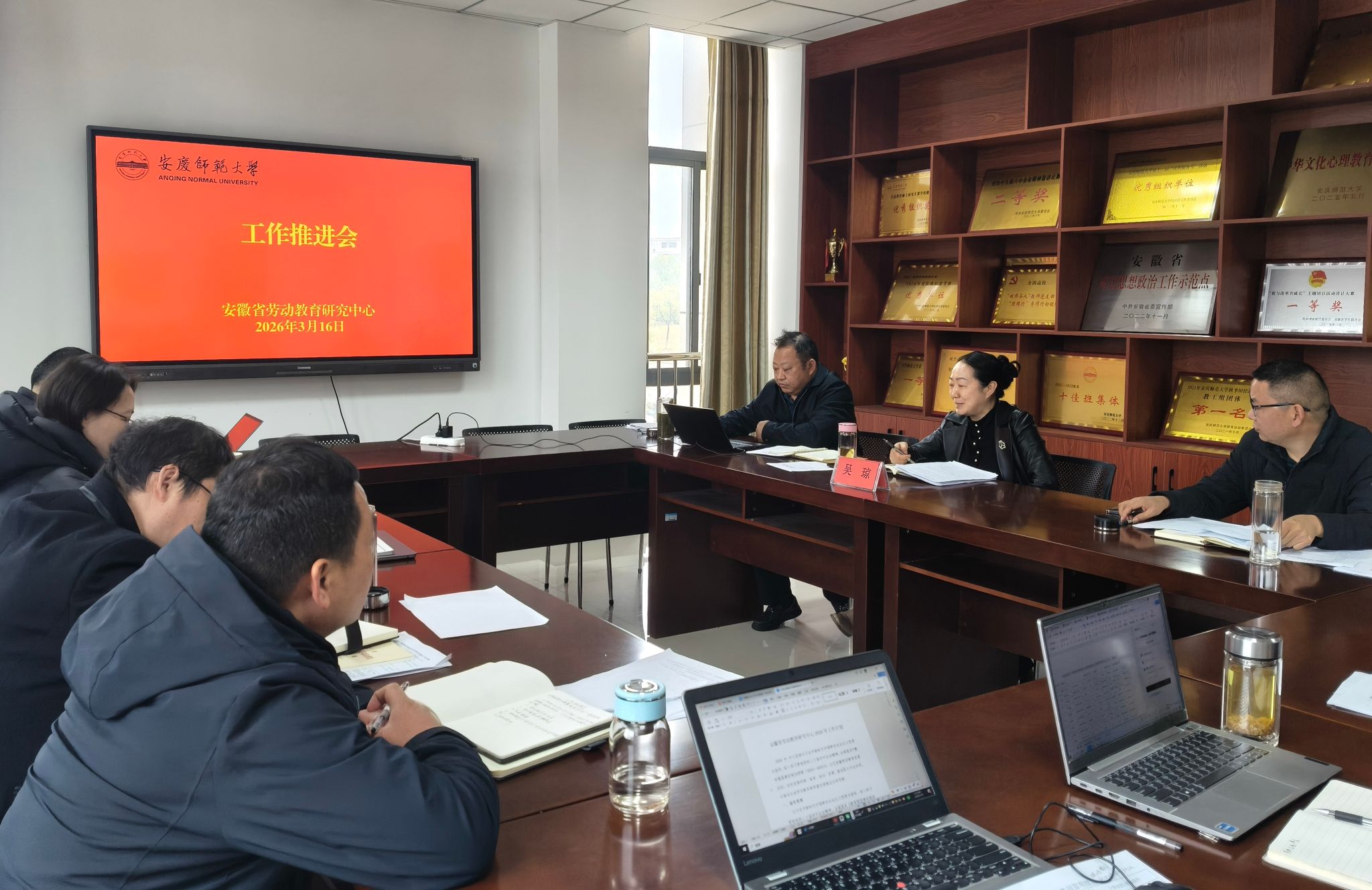 安徽省劳动教育研究中心2026年度第一次工作推进会于3月16日顺利召开。校党委常委、副校长,安徽省劳动教育研究中心常务副主任吴琼出席会议并作工作指导。中心副主任吴云助主持会议,教育科学学院领导班子及中心部分研究人员参会。