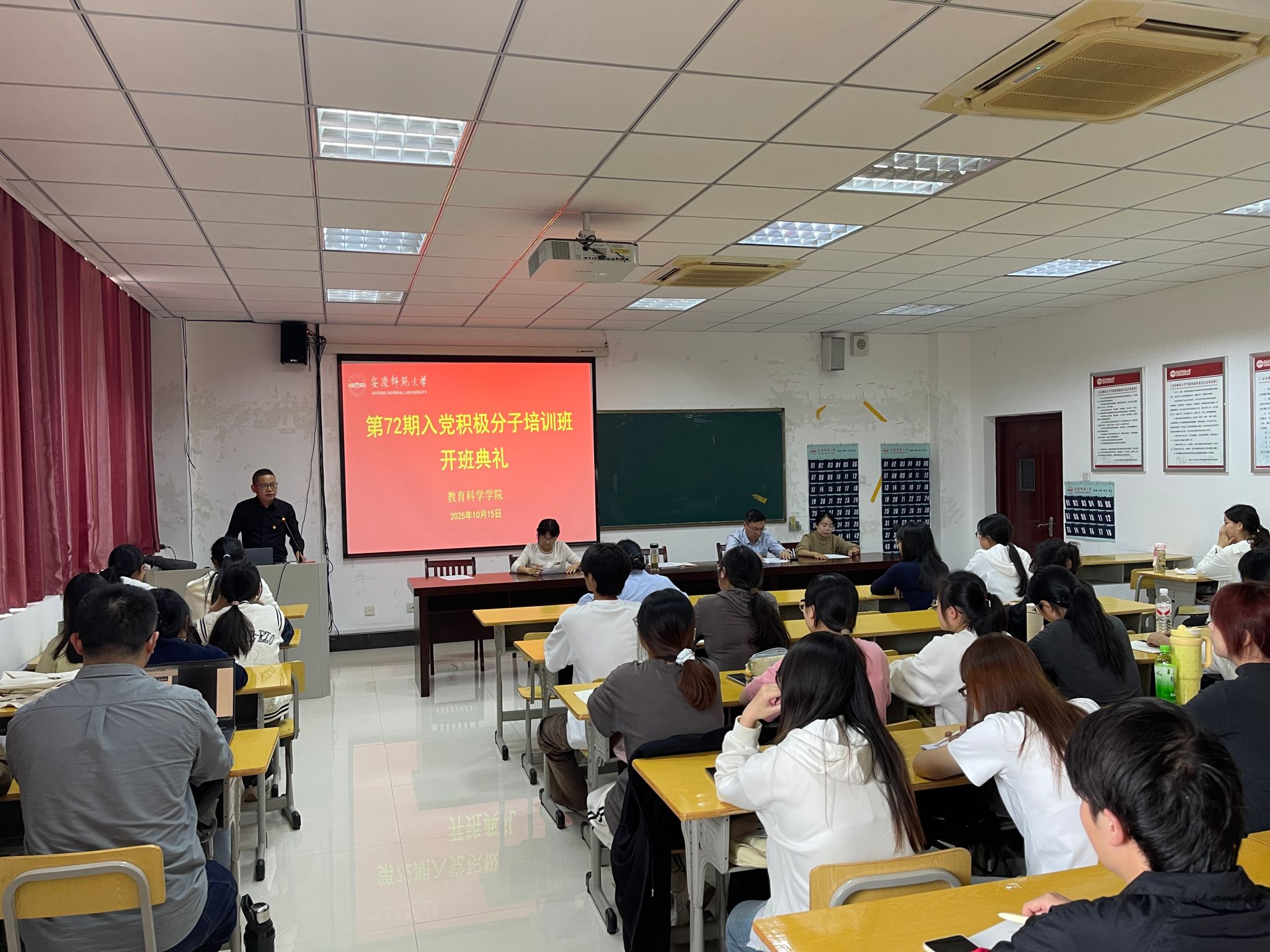 10月15日,我院在J305教室举行第72期入党积极分子培训班开班典礼暨第一次专题党课。学院党委书记何孔蛟,党委副书记许世平,各学生党支部书记出席培训会。第72期全体入党积极分子参加会议。开班典礼由党委秘书汪洋洋主持。