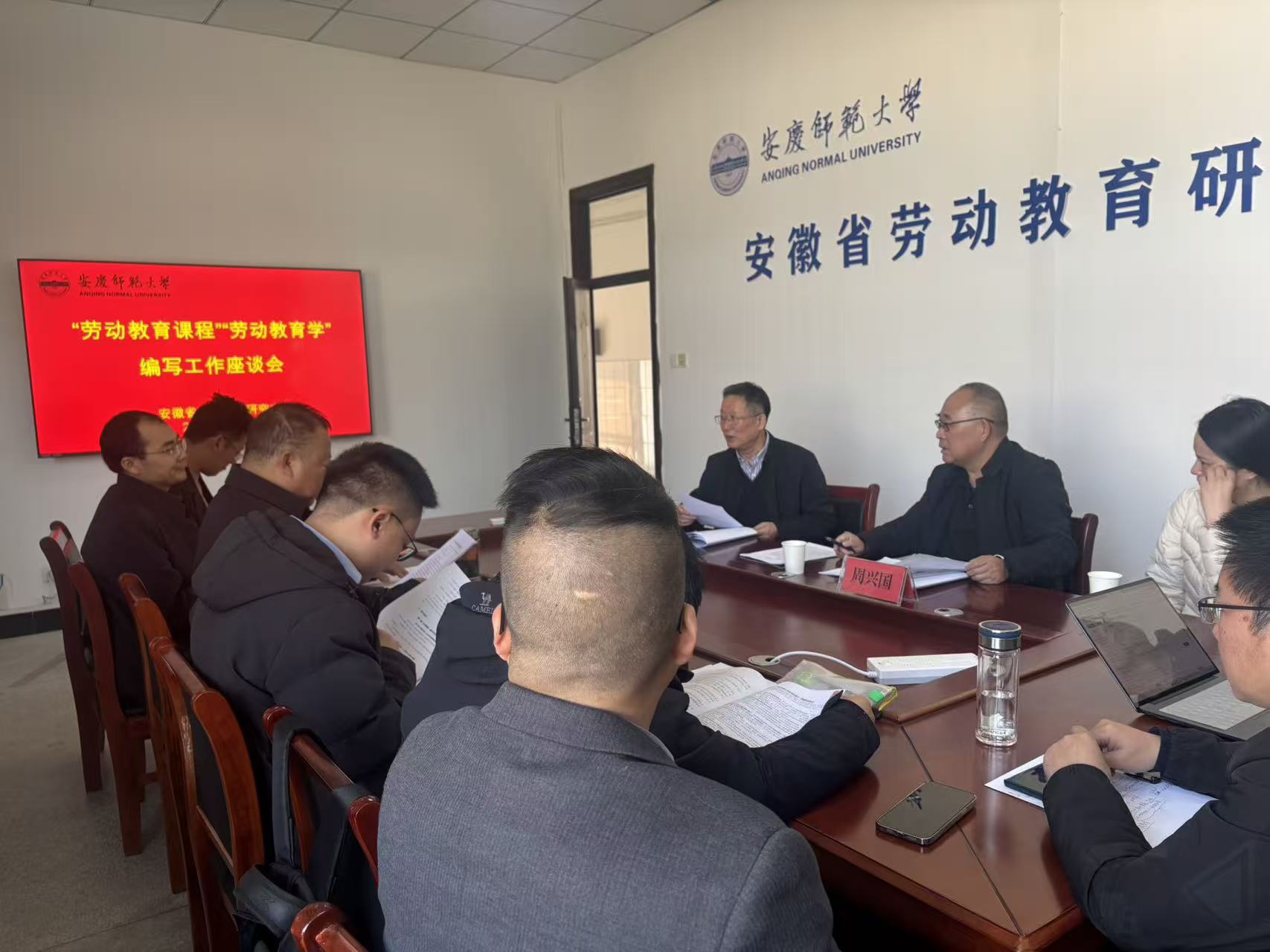 11月28日,安徽省劳动教育研究中心组织召开《劳动教育教程》《劳动教育学》编写工作座谈会。会议由中心副主任兼办公室主任吴云助主持,《大学生劳动教程》副主编周兴国、华中师范大学教育学院教授涂艳国受邀参会,中心办公室副主任陈效飞以及中心部分研究人员参会。